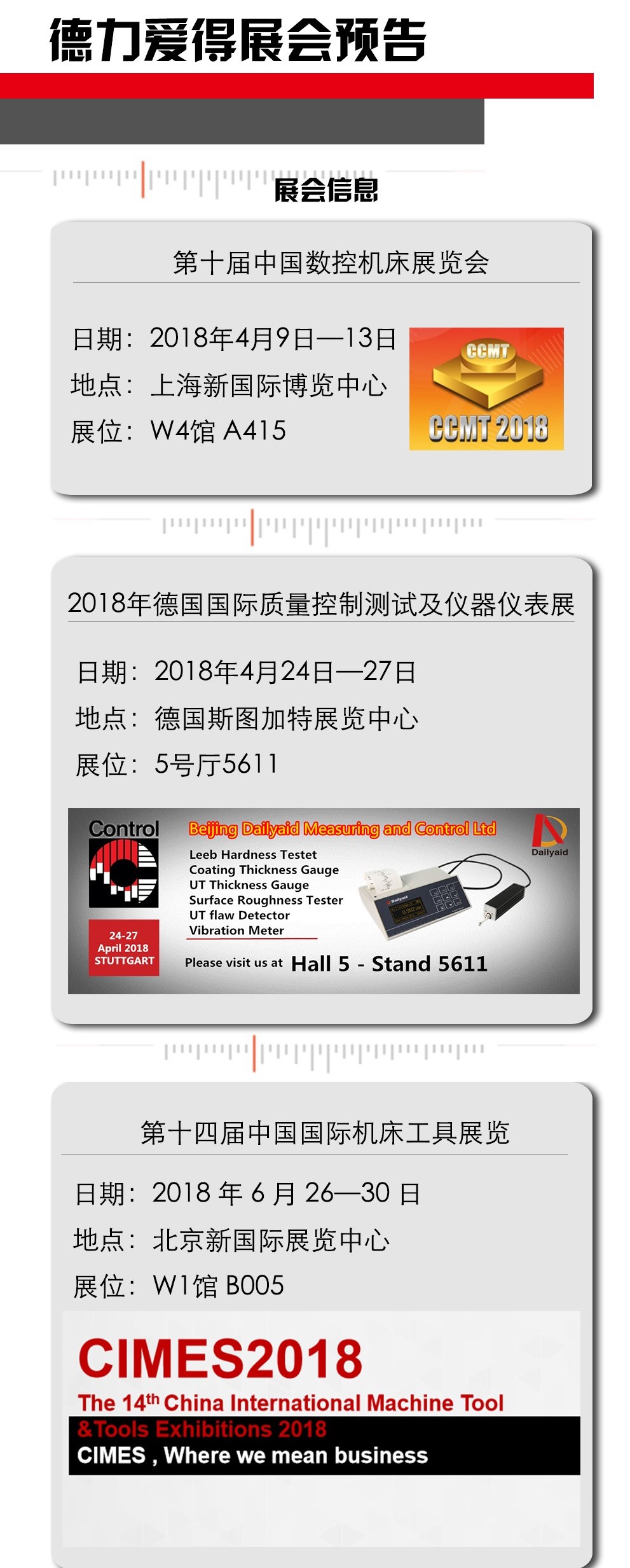 2018年是互相交流,共同進(jìn)步的一年。德力愛(ài)得將會(huì )如期參加以上展會(huì ),屆時(shí)歡迎